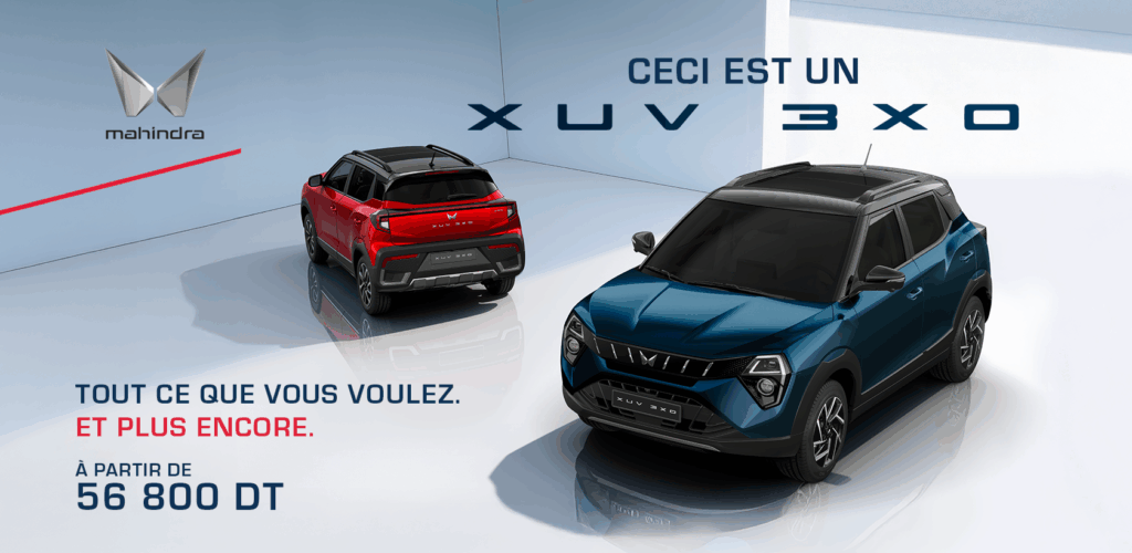 Le Mahindra 3XO est disponible dans le réseau Automobiles Zouari à Sousse (Akouda), Ben Arous, Bir El Kassaa et Gabès ainsi que dans les agences agréées à Mnihla, Sfax, La Marsa et Nabeul.